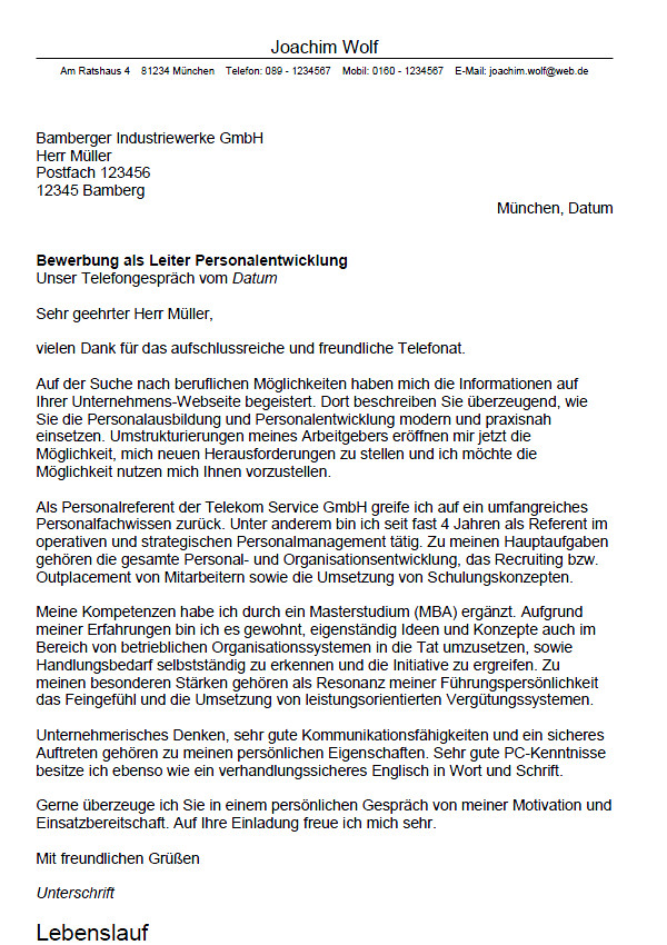 Musterbewerbung